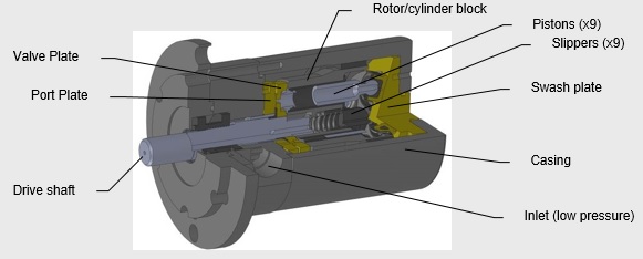 The axial piston pump and motor (APM) was invented in 1907 and was the foundational product for the oil hydraulics power and motion industries of today. Although the axial piston pump has proven its utility in oil hydraulics for more than 100 years, it was not until the invention of modern composite and ceramic materials and precision manufacturing technologies that the axial piston design could be used with plain water as the lubricating fluid.